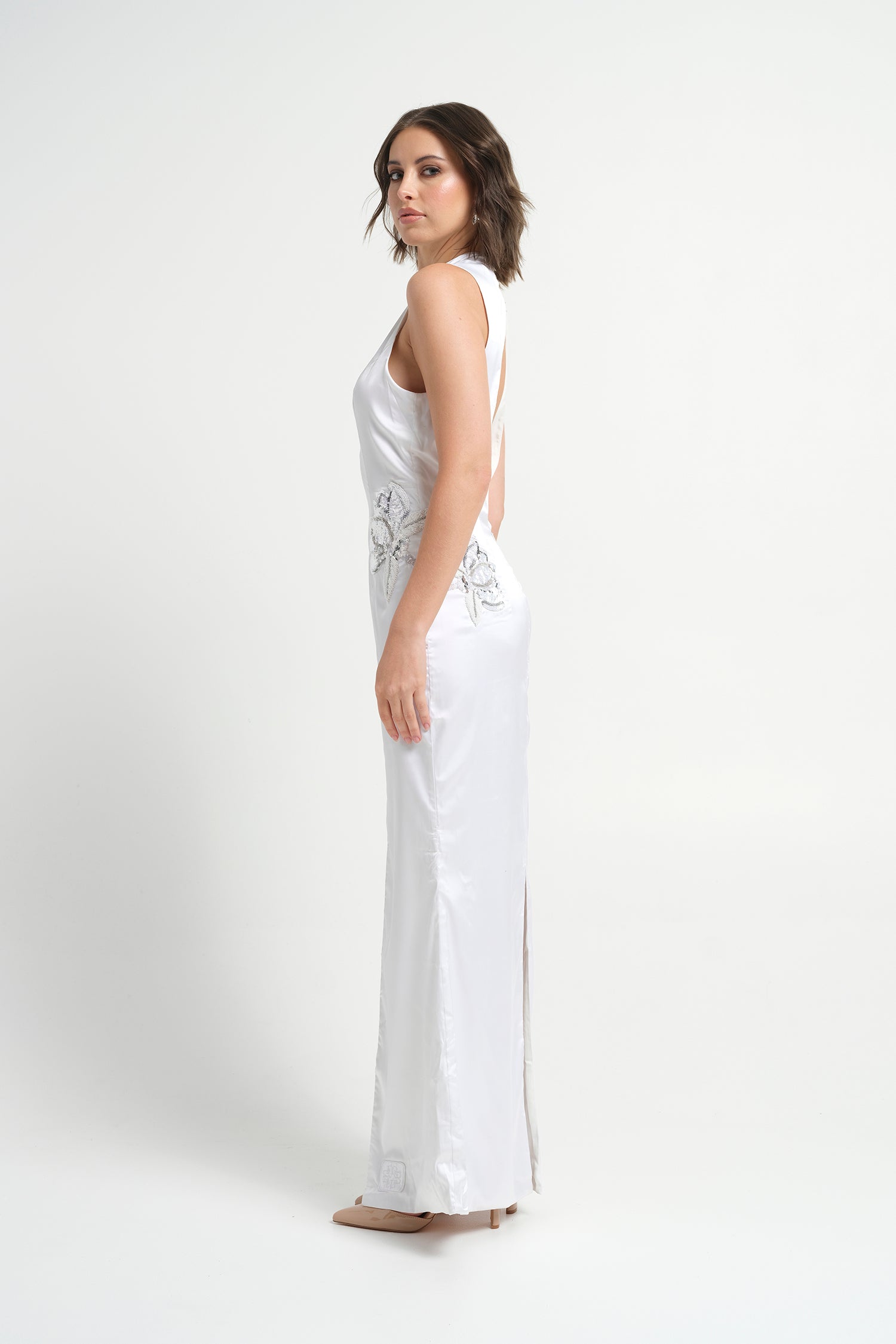 Paris Hand Embroidered Gown - White