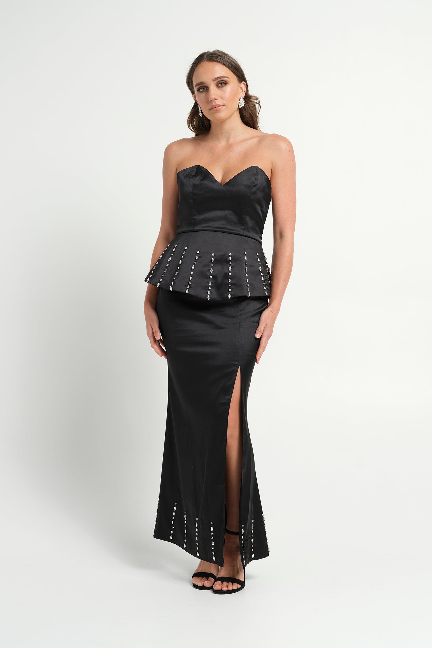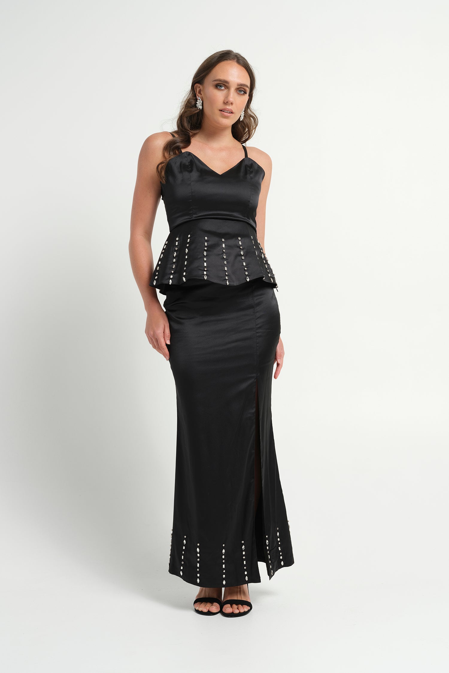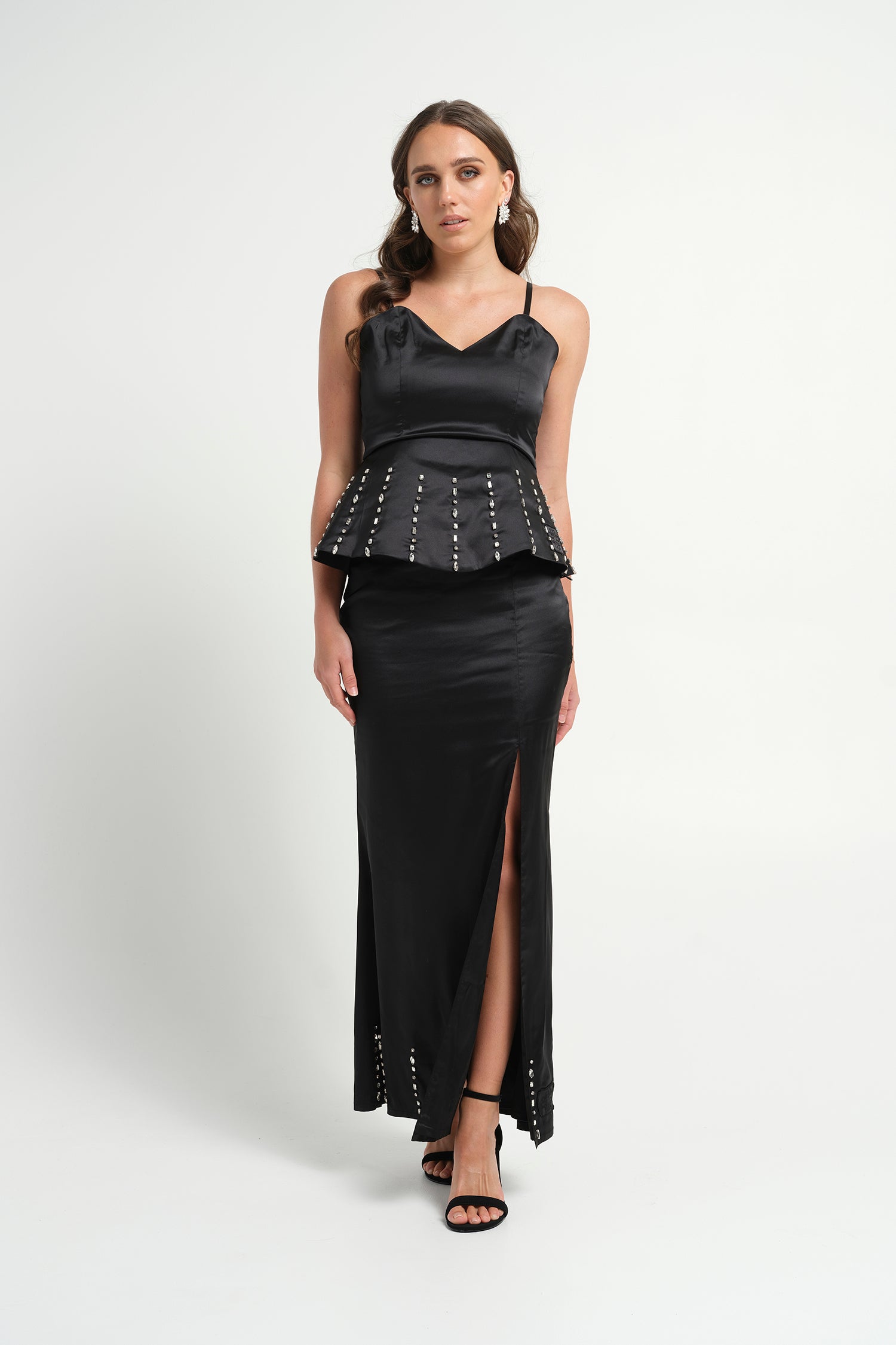 Rome Embellished Long Skirt- Black