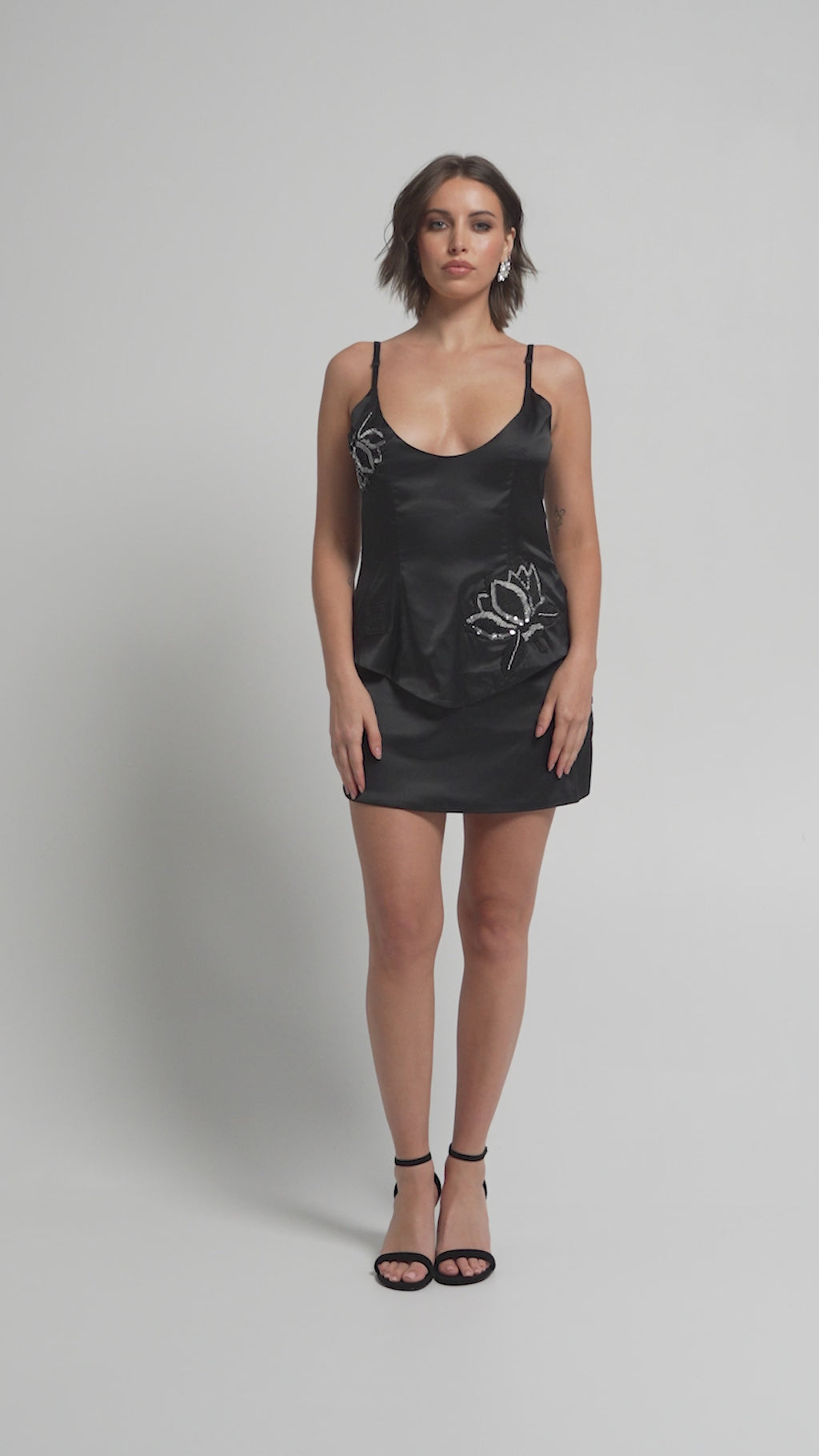 The Lotus Hand Embroidered Top in Black is where structure meets sparkle, designed for the moments you want to feel effortlessly captivating.